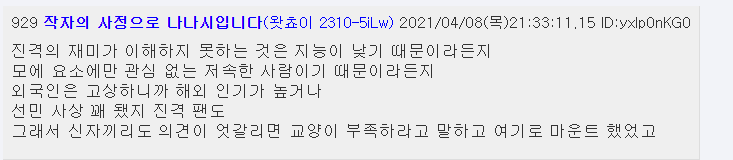 | 진격의 거인 서양팬들 화남 (0) | 2021.04.15 |