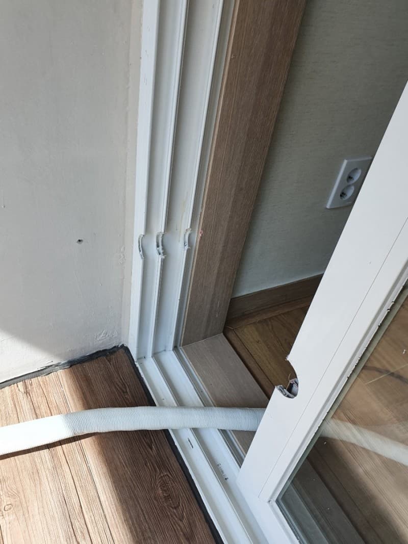 이거 설치 실수같은데 에어컨 물빠지는 호스에 물 존나 고이게 만들었네 ㅋㅋㅋㅋ 위에서 아래로 물이 잘빠지게 만들던가 최대한 물이 밖으로 배출이 잘되도록 호스를 만들어야 하는데 에어컨 내부에 호스가 U 이렇게 되면 365일 내내 물이 고여있고 안에 곰팡이 핌 샷시를 뚫더라도 좀더 아래에 뚫든가.