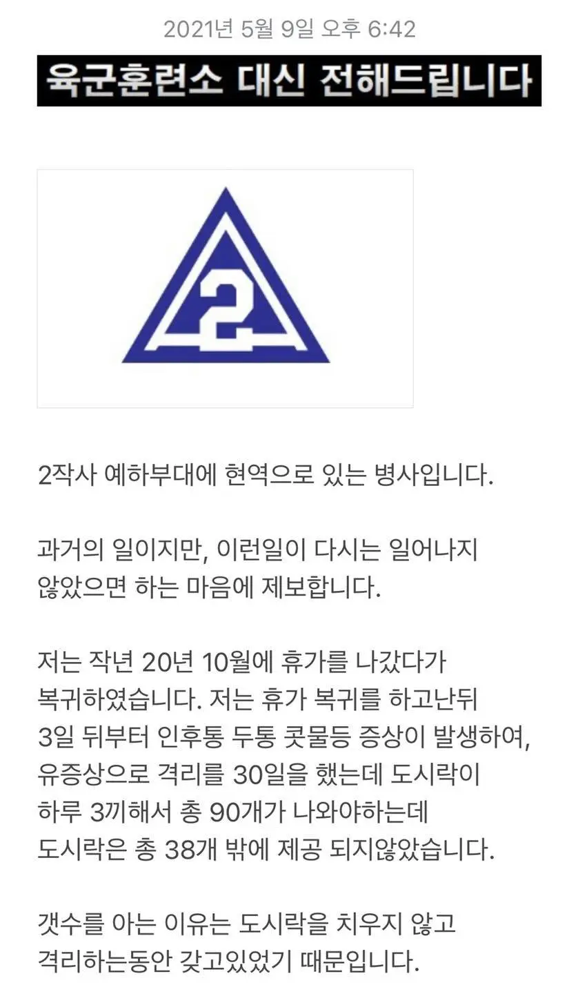 | 군대 부실식단 1사단 예하부대 추가 제보 (0) | 2021.05.04 |