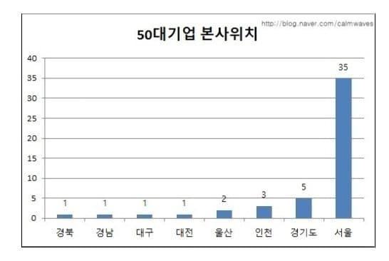 한국만 서울 수도권에 집중된 형태를 보인다.