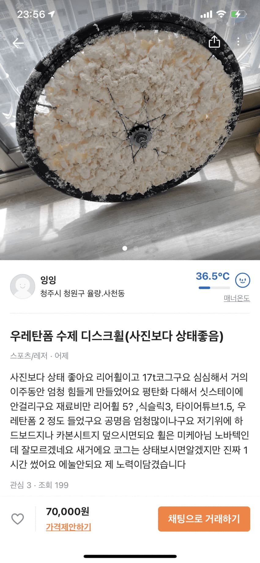 저게 뭐냐하면 디스크휠이라고 흔히 아는 구멍 뿡뿡 뚫린 휠 말고 원판처럼 되어있는 속도 더 빠르게 해주는 휠이 있음. 저거 선수들이 뒷바퀴에 씀 근데 저건 디스크가 아니라 우레탄으로 막아놓음