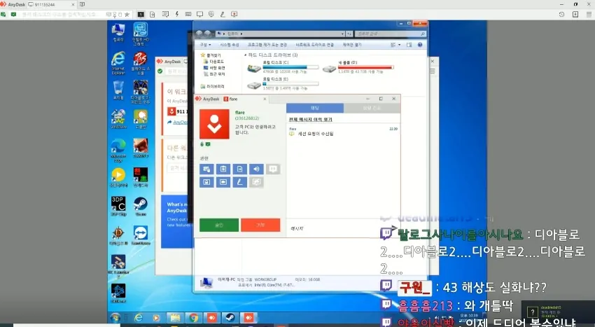 결국 어찌저찌 팀뷰어를 깔게 해서 드디어 보게됐는데
