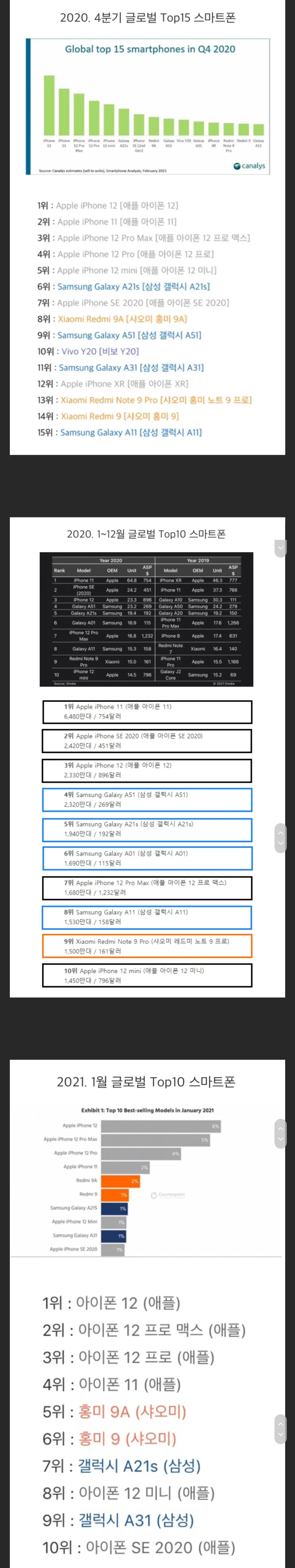 샤오미 순위 ㄷㄷ LG가 저렇게 저가폰 공략 했으면 안망했을껀데