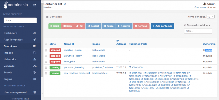 아하 포테이너로 하면 저렇게 된다는거구나 감사감사, 포테이너 쓰면 리눅스 터미널처럼 터미널로 컨테이너 만들 수도 있음?