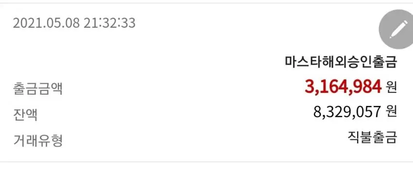 3만원 결제했는데 300만원 빼감 ㅋㅋ