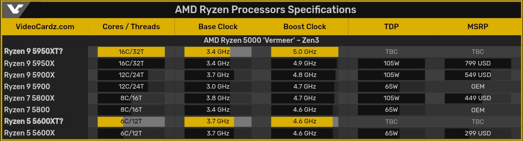 AMD preparing B2 stepping of Ryzen 5000 "Vermeer" CPUs with clock speed up to 5.0 GHz - VideoCardz.com
