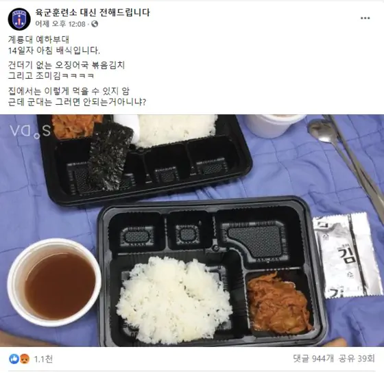걍 묻지도 따지지도 말고 한창때 20대 남자 군인인데 푸짐히 엄청 좀 잘 먹이면 어디가 덧나나?? 반박한답시고 내놓은 도시락 꼬라지도 한심하다