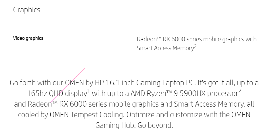 Radeon RX 6000M 그래픽이 탑재된 HP Omen 16, 출처 : HP