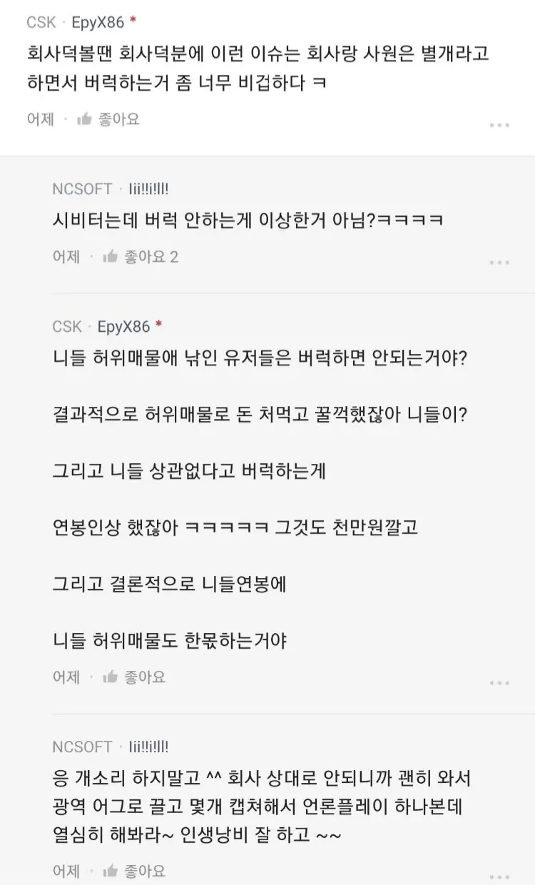 진짜 NC 양아치 회사답게 직원새끼들도 ㅈㄴ 양아치 근성이 남아있네 ㅋㅋㅋㅋ