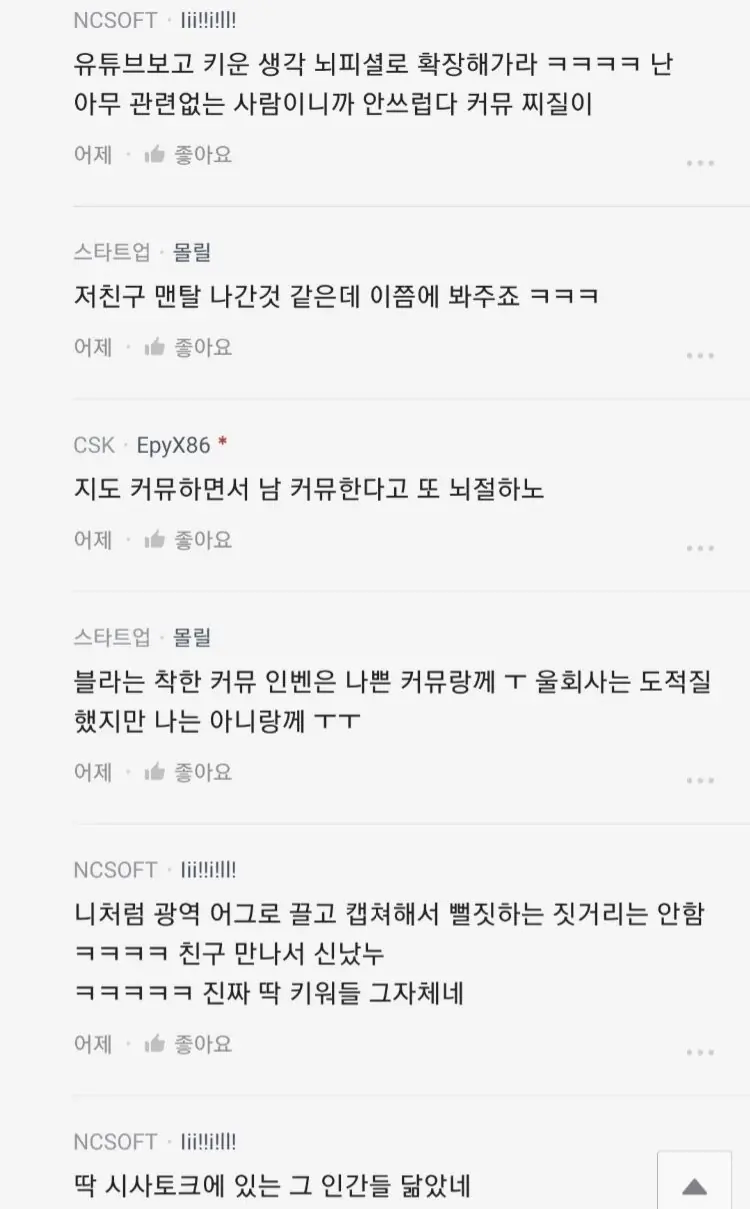 저기 덧글다는 nc놈들 죄다 게임이랑 관계없는 애들 아닐까? 경리 총무 인사 마케팅 등등...