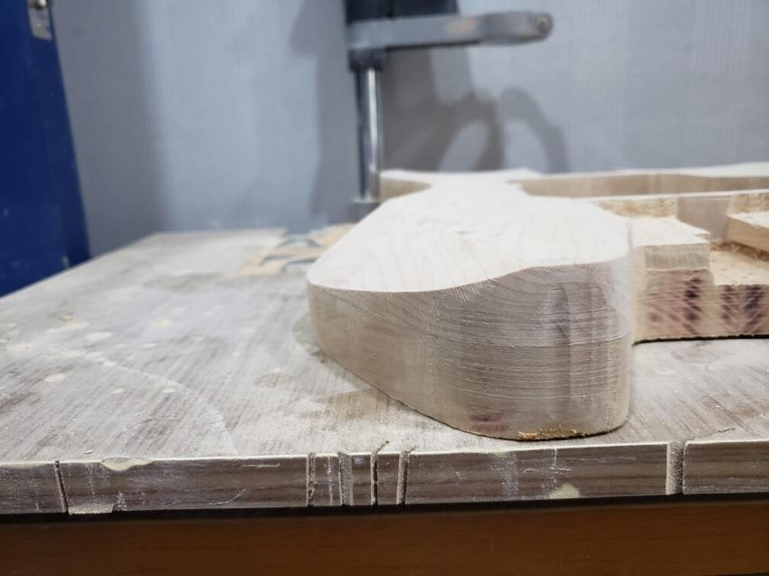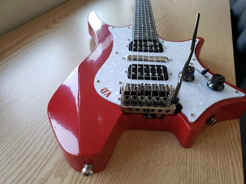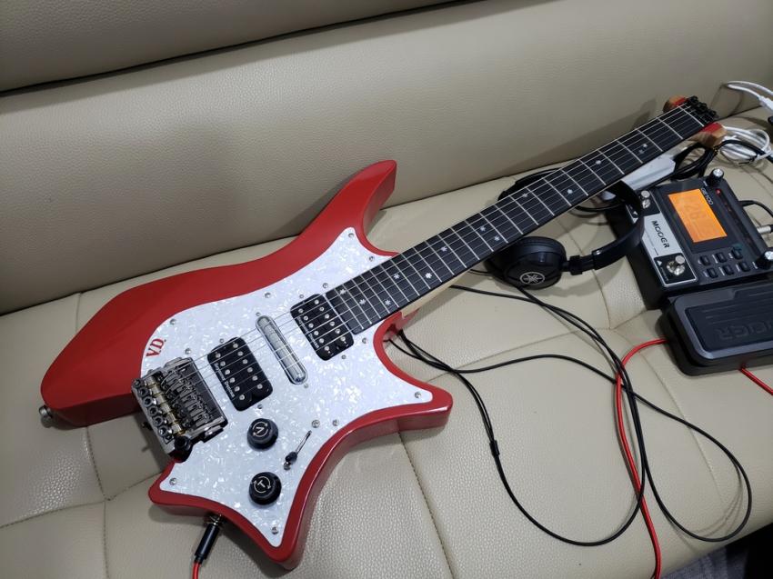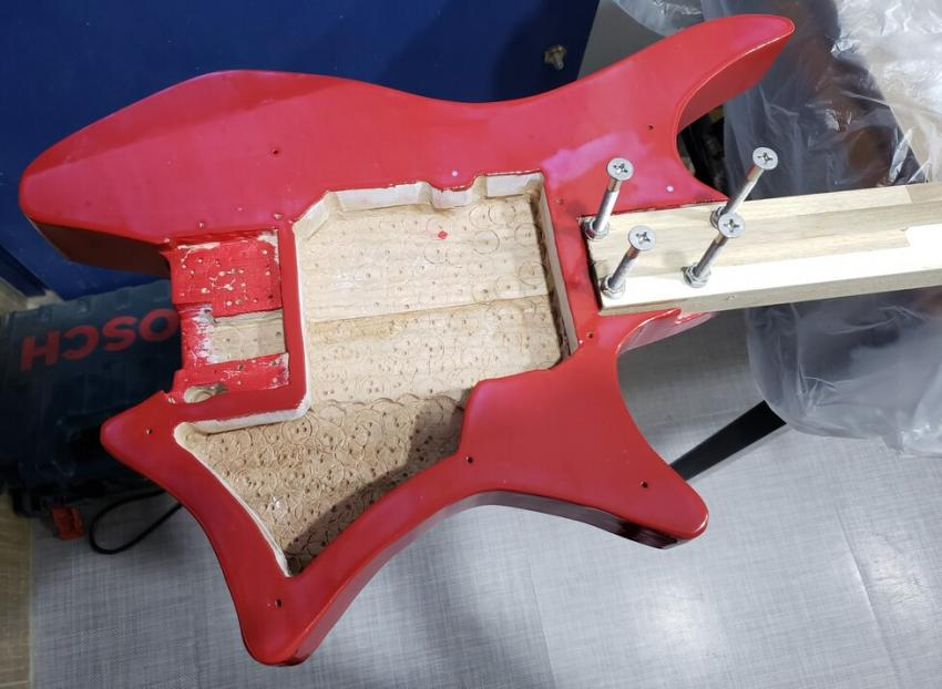 그래서 탑을 조금이라도 더 잘라내어서 기타 무게를 줄이려고 했기 때문입니다 간편한 헤드리스 기타가 무게가 무거우면 의미가 없지 않겠습니까?