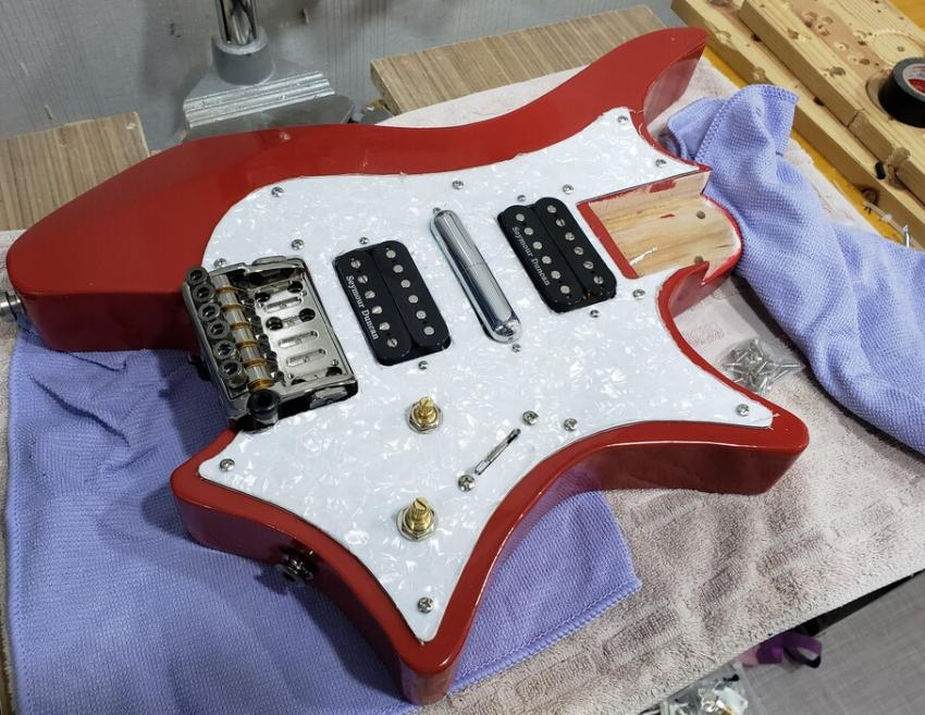 번쩍번쩍 완성된 바디에 완성된 픽가드를 올리고 브릿지도 달아주면