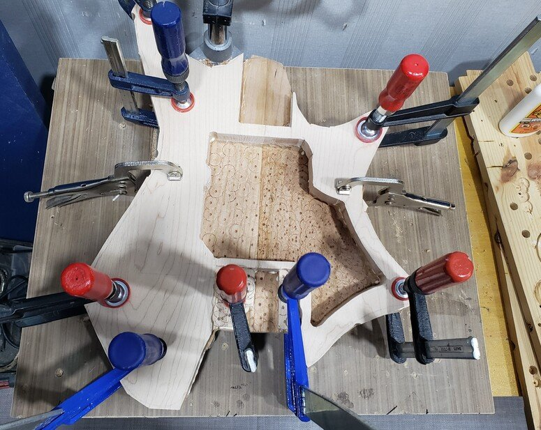 클램프를 총 동원해서 눌러줍니다 이래저래 사모은 클램프가 10개나 되는데도 부족합니다 이대로 24시간 건조시킵니다
