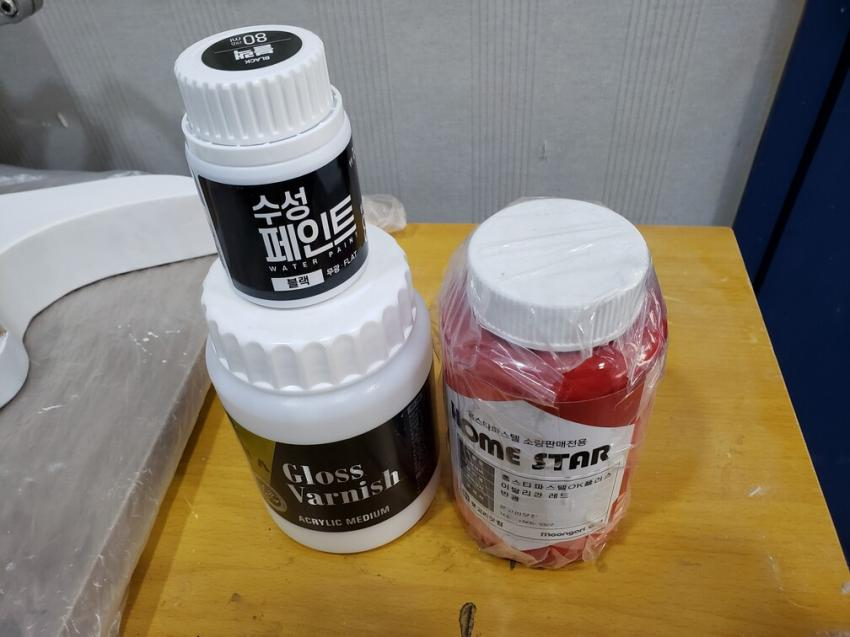 홈스타 이탈리안레드 85% + 다이소 수성페인트 검은색 10% + 알파 유광 폴리우레탄 바니시 5% 섞어서 칠했습니다.