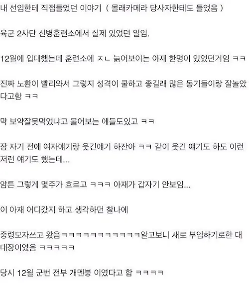 당시 12월 군번 전부 개멘붕 이였다고 함ㅋㅋㅋ