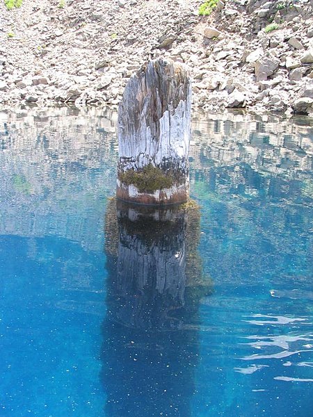미국 오리건 주의 한 호수에 둥둥 떠다니는 9m의 나무토막