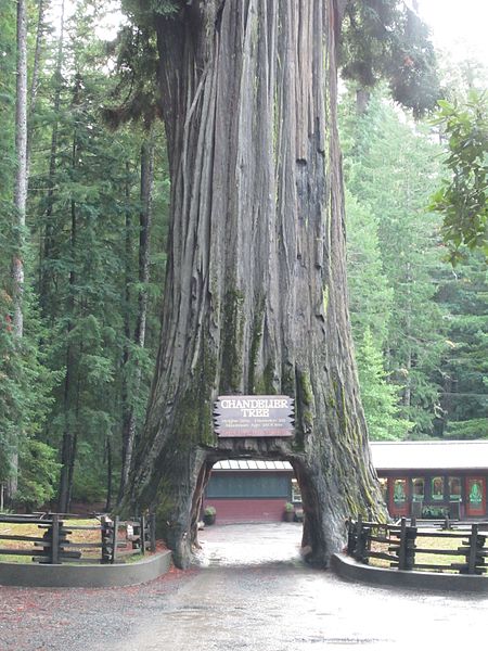 나무에 큰 구멍이 뚫려 있어서 자동차가 나무 사이를 통과할 수 있다