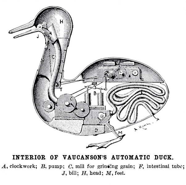 이 기계 오리는 알갱이를 먹고 소화하고 싸는 능력...을 불완전하게 가지고 있었다