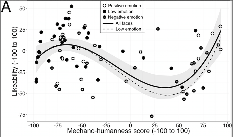 로봇 혹은 조형물이 인간을 닮을수록 보통 호감도가 상승하게 되는데,