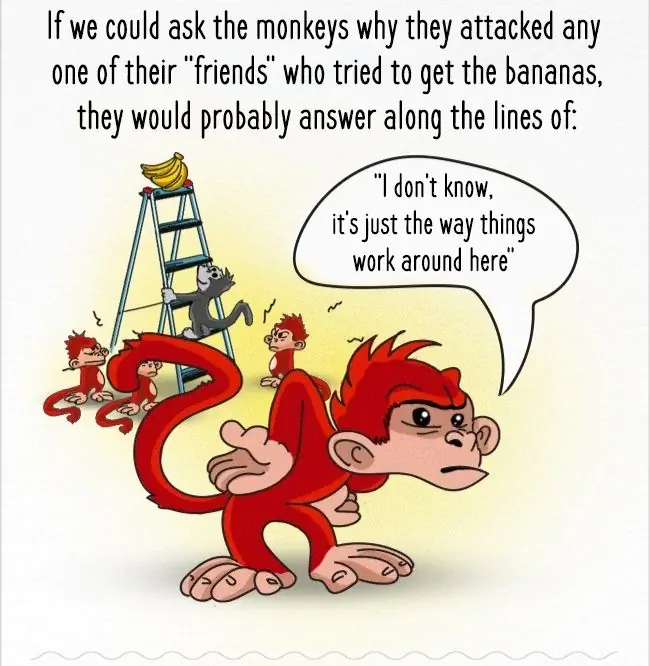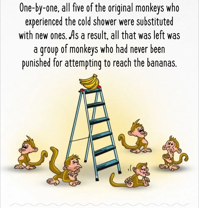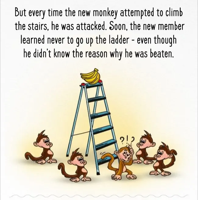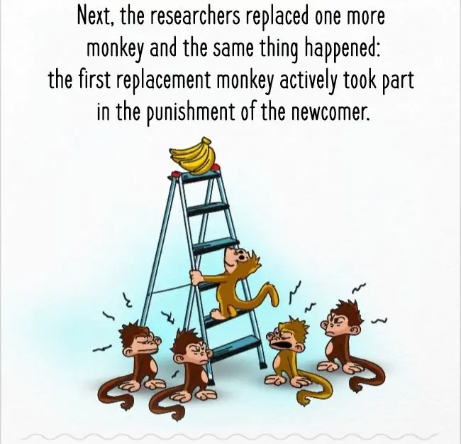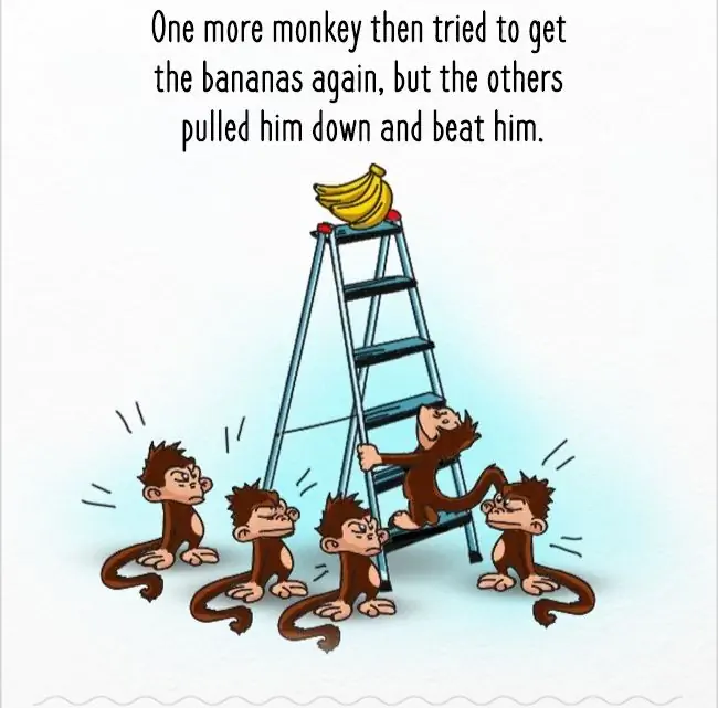그 이후 원숭이들은 바나나의 유혹에도 불구하고 사다리에 올라가지 않게 됐다.