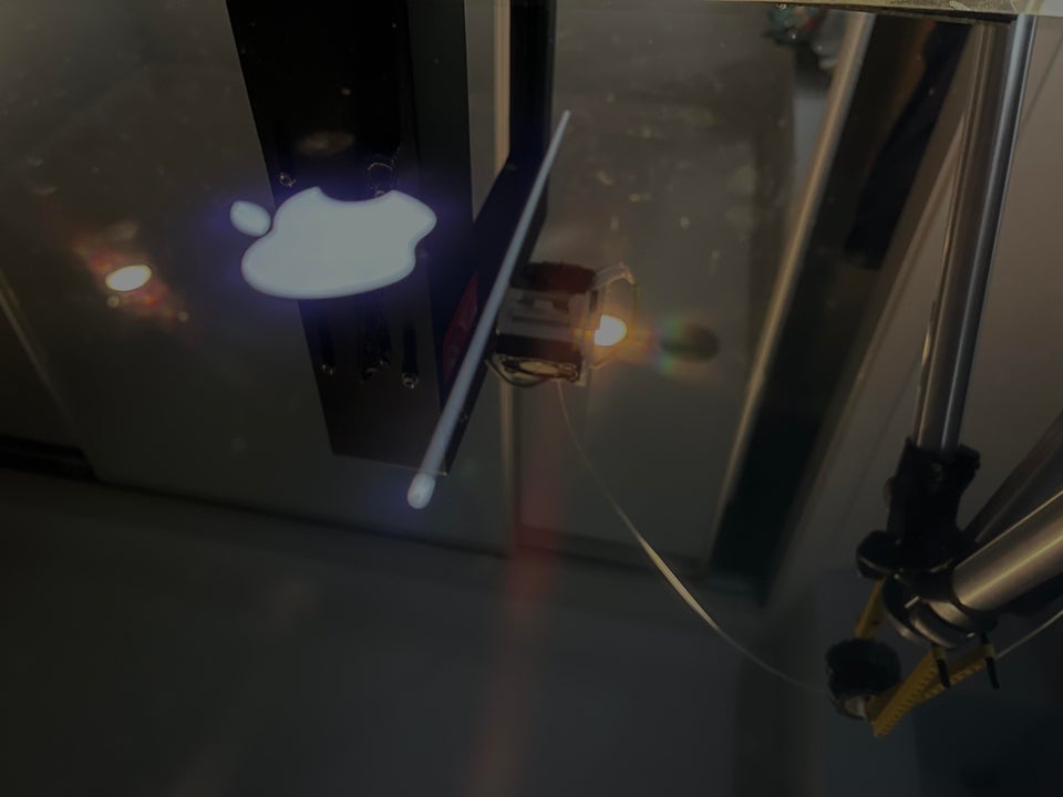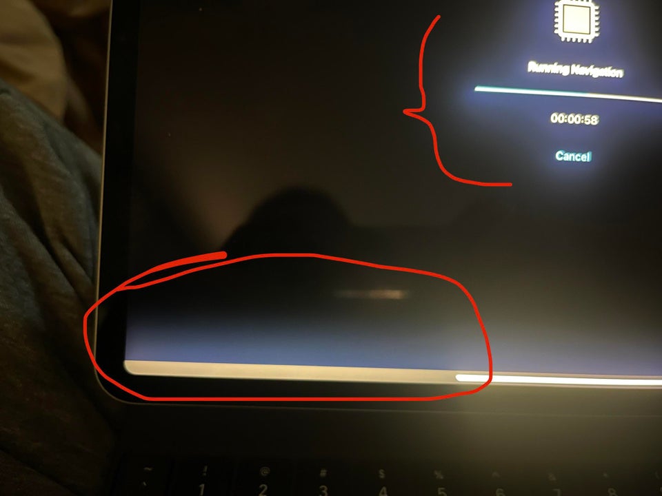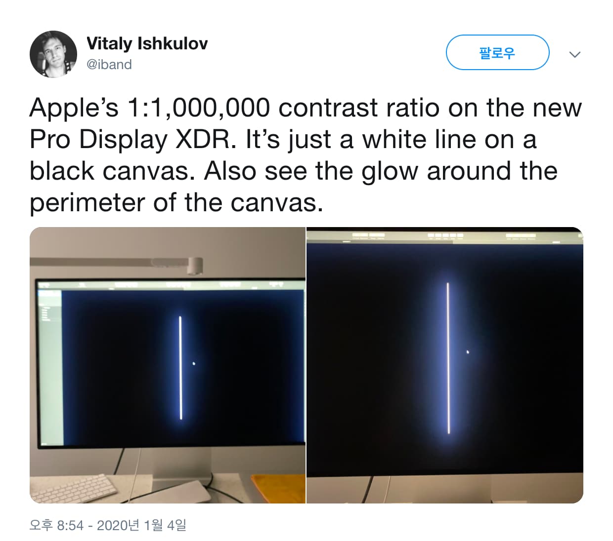 위에는 애플 xdr mini led 모니터 화이트 라인 블루밍 사진
