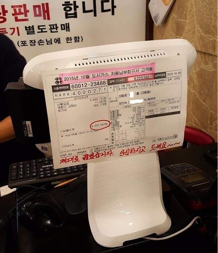 가스요금 고지서 ㅋㅋ 푸주옥이네 여기 미국산 소고기 파동때 망할뻔함