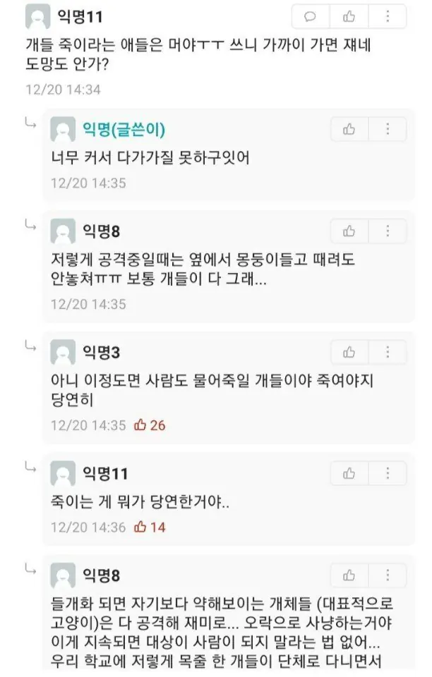 못본사람은 모르는데 들개는 길고양이랑 다르게 진짜 위험함. 어른들이 길고양이는 ㅈ같다해도 그냥 두는데 들개는 바로 신고하는 이유가 있어