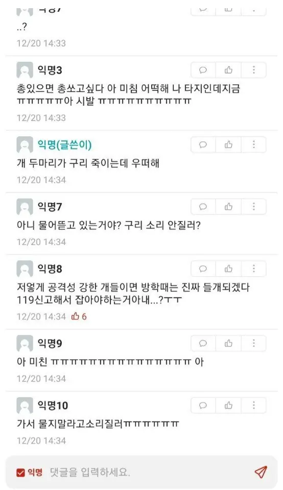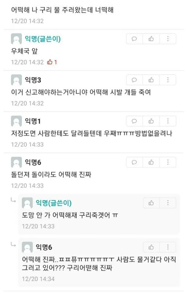 길고양이는 민폐긴 해도 도망가기만 해서 안무서운데 들개는 ㄹㅇ 무서움... 어릴때 동네에 주인없는 개가 있었는데 사람한테 막 덤볐음 후.. 지금은 들개는 아예 안보이고 길고양이도 잘 안보임