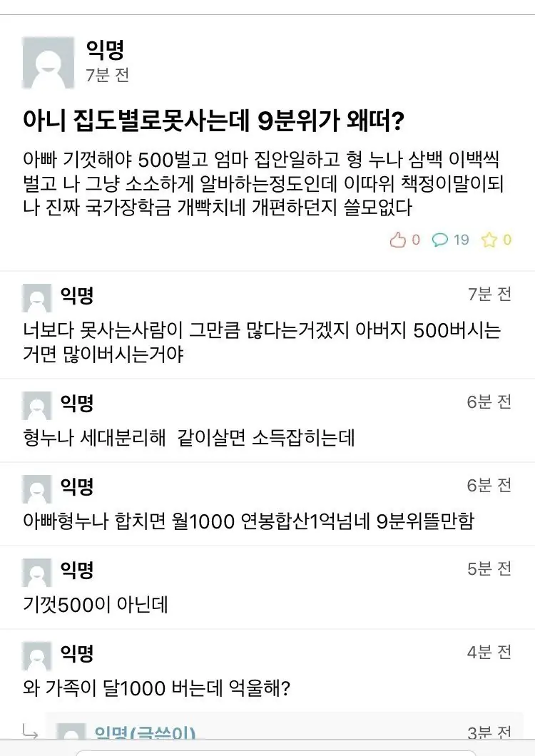 ??? : 에휴 5인가족이 500이면... 거지아님?? 쓰니 불쌍하다 ㅠㅠ