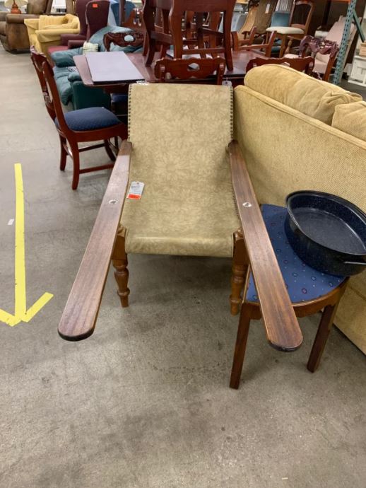 A : 농장에서 쓰는 의자로, 말을 오래 타서 아프고 부은 다리를 올려놓는데 사용합니다. (곧 출산 할 것 같은 자세로) 그렇기에 등받이도 기울어져있습니다.