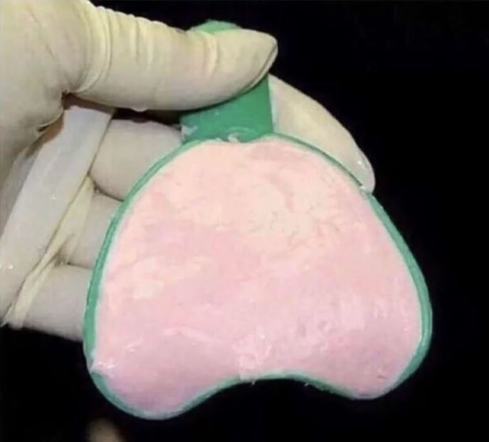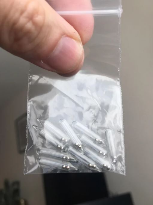 A : 품질 관리를 위한 금속탐지기를 시험할 때 쓰는 가짜 모형 입니다. 이것이 들어있었다는건, 품질관리에 실패했다는 뜻 이겠네요.