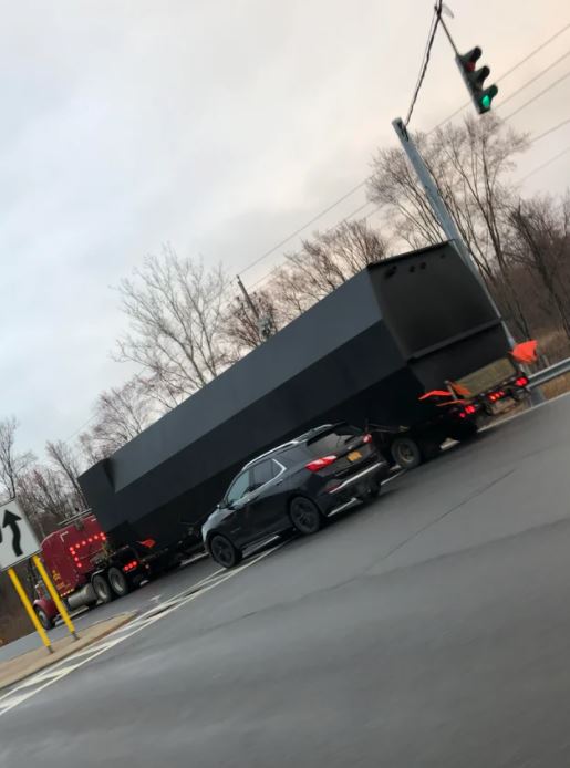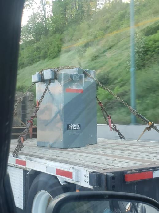 A : 기중기 균형추입니다. 대형 크레인은 자체 무게만으로도 포장도로에서 과적이 되기 때문에 균형추를 따로 떼어내어 이동합니다.
