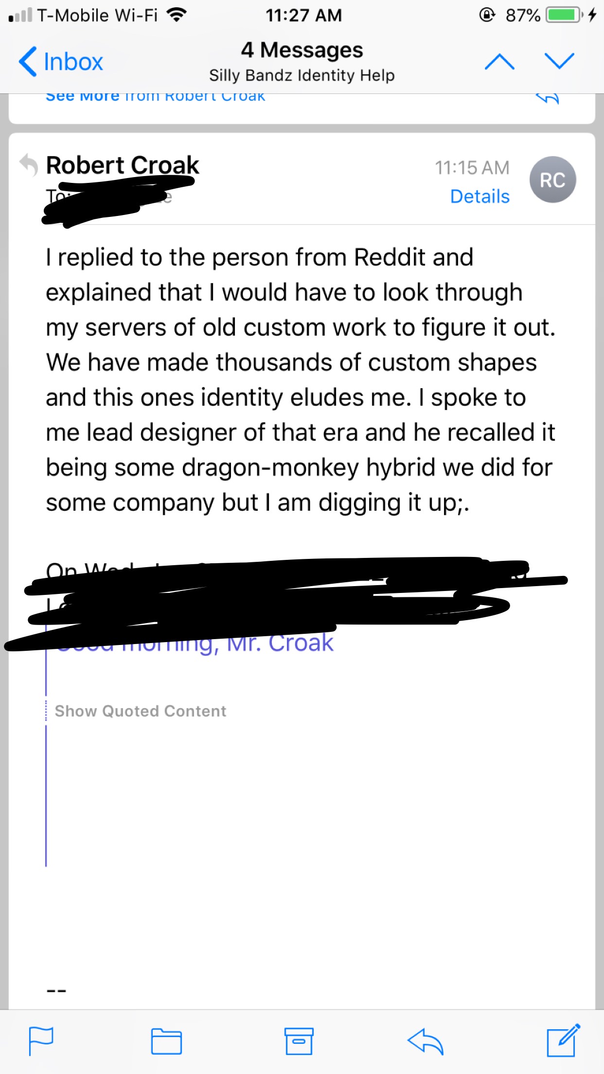 A : 앗! 방금 창업자인 로버트 클라크씨에게 보냈던 메일의 회신되었습니다.