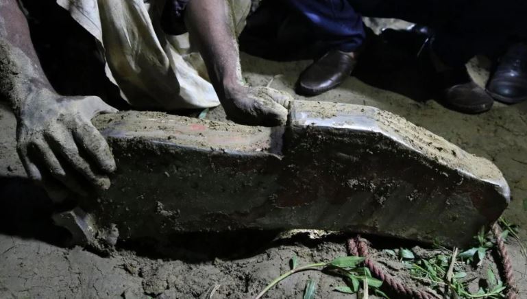 A : 이것이 무엇인지는 알 수 없었습니다. 그러나 방글라데시 우파질라 바티야리 지역의 이스트 하스나타바드 마을에서 발견되었으며 길이 3피트, 무게는 49.2kg, 발견 이후 대태러부대가 회수했다고 합니다.