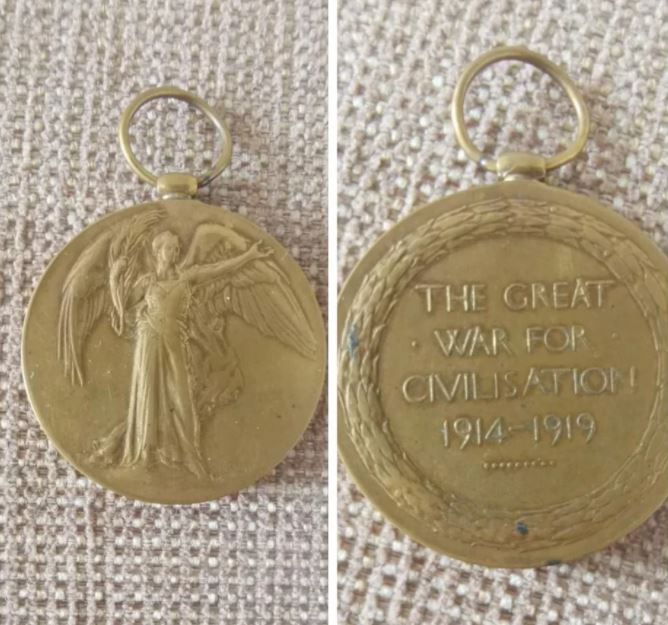 A : 전쟁승리 메달. 테두리의 이름과 등록 번호가 써 있을겁니다.