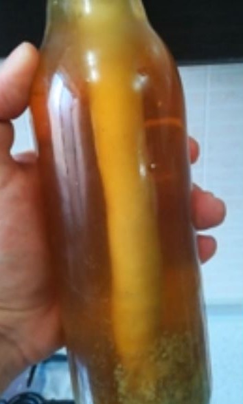 Q : 1년정도 까먹고 놔둔 오렌지 주스병이야 이게 뭐야?