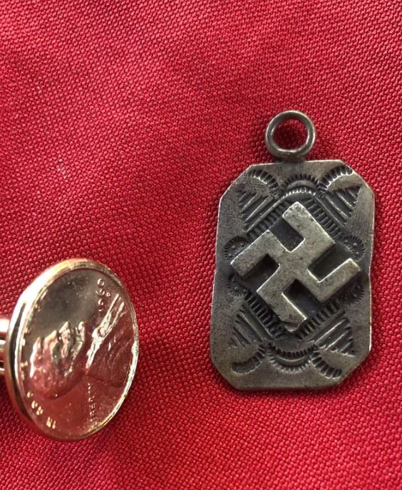 A : 찰스 호너가 만든 쥬얼리입니다. 1910년경 만들어진 것이며 행운의 열쇠입니다. 당시에는 나치의 상징이 되기 전이었습니다. (나치의 채택은 1920년경)