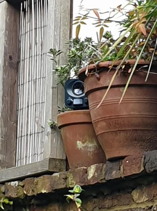 Q : 이웃집 정원에서 우리쪽으로 놓여있는 기계가 있어. 카메라 같은데..