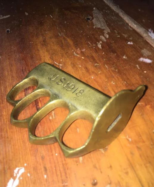 A : 1918년 생산된 황동 너클 트렌치 나이프 입니다. 이미지를 참조하세요.