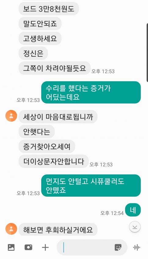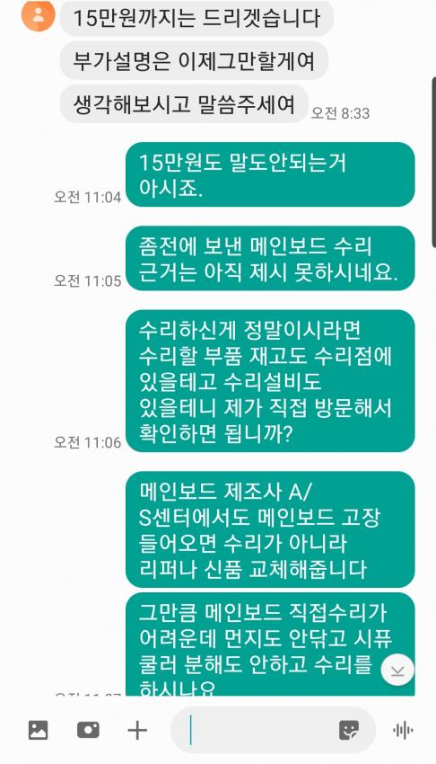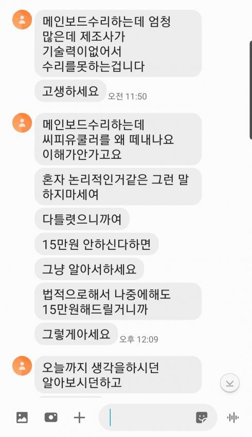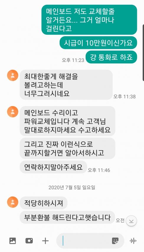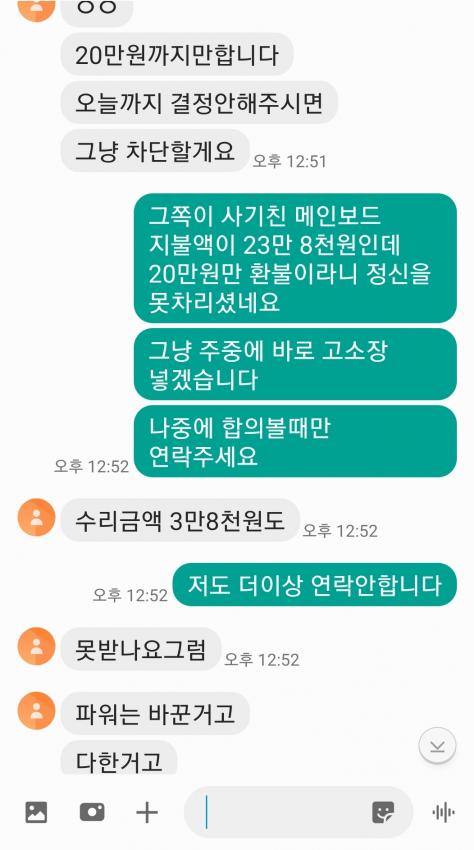 메인보드 수리를 진짜 했다고 쳐도 저건 신품교체라고 했다가 지멋대로 수리한건데 돈 다돌려줘야지 말하는거 보니까 진짜 저런애들은 진짜 나중에 또 사기치면 가중처벌로 깜빵갔으면 좋겠네