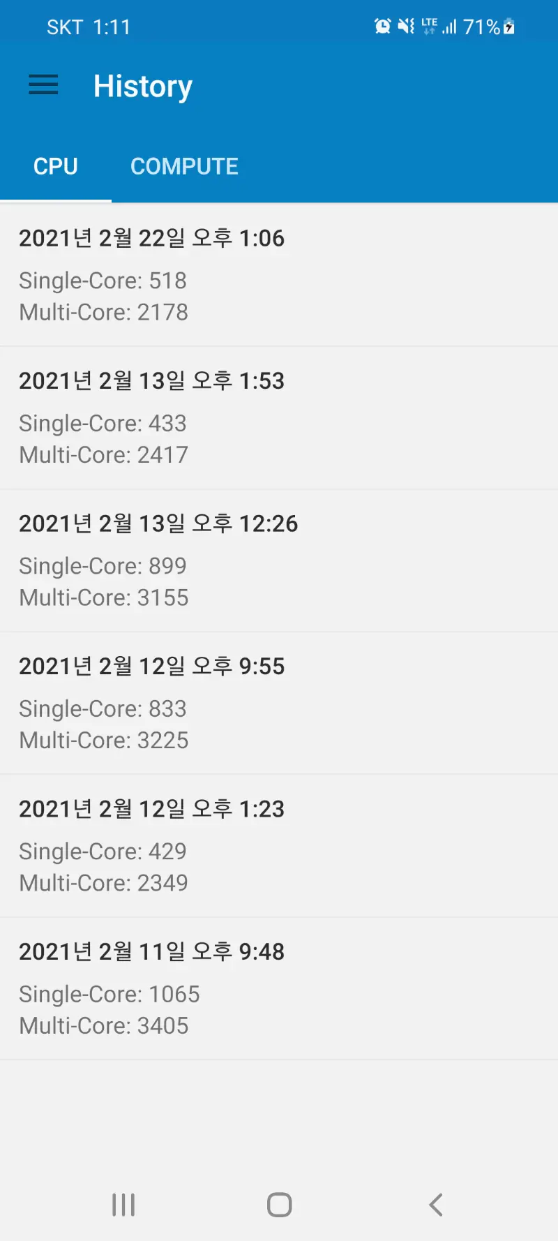 절전모드나 속도강화 사용하지않은 기본상태입니다