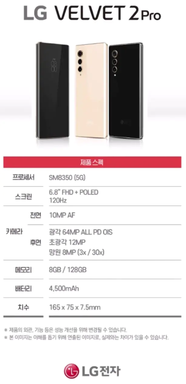 폰 구입할 때 무게를 중요시 하는데 벨벳2프로가 v30급으로 화면크기 대비 정말 가볍고(175g) 두께도 가장 얇다고 하던데 확실히 lg가 대기업 답게 만드는 노하우는 있는 것 같은데 아쉽습니다..